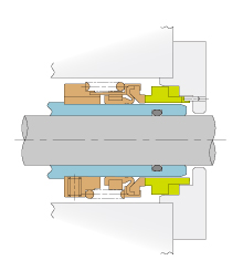 メカニカルシールは、ポンプや攪拌機(ミキサー)などの回転機械において、高速回転する軸(シャフト)部分から内部の液体や気体が外部へ漏れるのを防ぐ高性能な軸封装置です